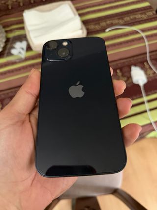 Teléfono móvil iPhone 13 en color negro con 128GB de almacenamiento. Incluye cable carga original Bateria al 84%