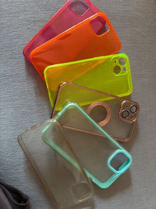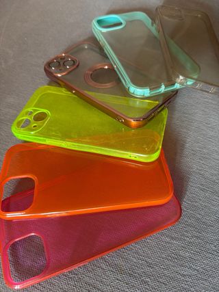 Lote de fundas transparentes para iPhone 13 con bordes de colores neón. - Funda rosa neón. - Funda naranja neón. - Funda verde neón. - Funda transparente con borde rosa. - Funda transparente con borde turquesa. - Funda transparente
