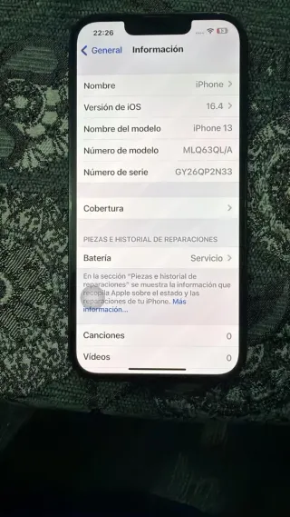 iPhone 13. Capacidad 256GB. Versión Ios 26.1