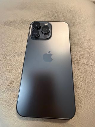 Teléfono móvil iPhone 13 Pro Max en color gris espacial con 128GB, 78% de batería. Ni un solo rayón, siempre con funda y protector de pantalla.