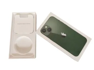 Caja original para iPhone 13 en color verde. - Incluye compartimentos para el teléfono y accesorios. - Incluye solo la caja ( lo que muestran las fotos)