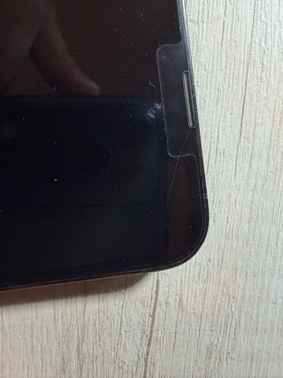 Teléfono móvil iPhone 13 con 128GB de almacenamiento. La pantalla está rota una parte, pero no afecta su funcionamiento, solo a la parte afectada como se ve en la segunda imagen. Batería en reparación pero dura la carga. Precio acorde su estado.