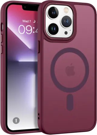 03336. NUEVA. Funda para iPhone 13 Pro Max 6,7" [Compatible con Magsafe] Funda Mate Magnética Delgada y Translúcida, Protección Antigolpes y Antigoteo, Protectora Anti-Huellas (Burdeos). ★【Perfectamente en forma】: esta funda para iPhone 13 Pro Max 6,7", no es compatible con otros modelos de teléfono. El diseño translúcido mate deja que el logotipo de tu iPhone se vea ligeramente elegante y avanzado! Ten en cuenta que el protector de pantalla no está incluido Adsorción súper magnética: la potente serie de imanes dentro de la funda del teléfono puede ayudar a tu iPhone 13 Pro Max de 6,7 pulgadas a engancharse firmemente a acces...