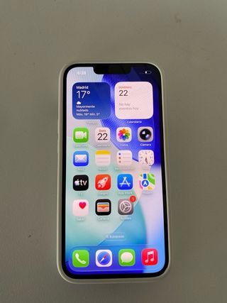 Teléfono móvil iPhone 13 en color blanco. El porcentaje de la bateria es de 78% Tengo la caja pero no el cargador Las camaras estan intactas al igual que las pantallas, la pantalla tiene protector anti espía.
