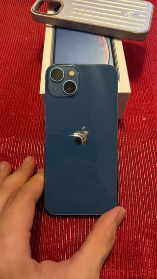 Teléfono móvil iPhone 13 en color azul eléctrico se entrega con funda protectora y cristal templado, y otra funda a mayores valoradas en más de 20 € cada funda - Batería 95 % - Capacidad de 128GB. - Diseño elegante y moderno.