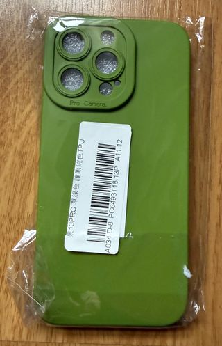 Funda para iPhone 13 Pro de color verde. - Material: TPU. - Diseño de cámara Pro. - Color: Verde hierba. En la segunda imagen se muestra todas las carcasas que tengo a la venta, por si te gusta otra.