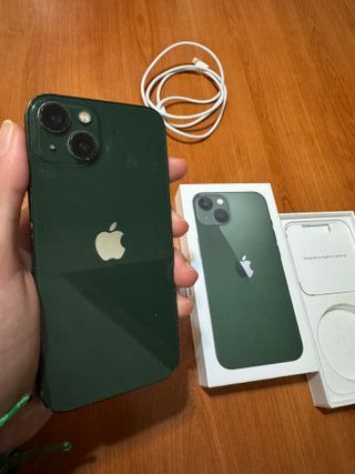 -iPhone 13 verde con 83% de batería y 128gb de almacenamiento. Viene con caja y cargador, todas las piezas son 100% originales nunca cambiadas. EXTRAS: No tiene ninguna falla. Si estás interesado y estás lejos de mi ubicación puedo desplazarme sin ningún problema hacia donde estés ubicado. A día de hoy el iPhone 13 es uno de los mejores calidad/precio del mercado debido a que va a seguir actualizándose no como el 11 y 12.