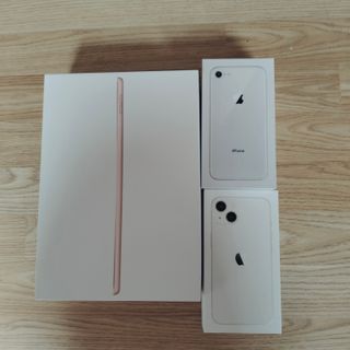 Cajas de distintos dispositivos de Apple, iPhone y iPad: iPhone 8, silver, 64GB. 5€ iPad 7, gold, 32GB. 8€ ❌ iPhone 13 NO DISPONIBLE ❌