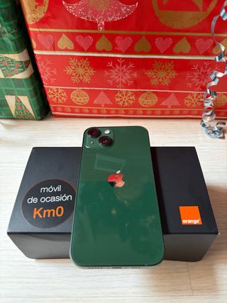 Teléfono móvil iPhone 13 en color verde y con 128GB de almacenamiento. Vida de la batería 78% Todas las piezas son originales, no se ha tocado nada Tiene 3 años Comprado en Orange libre km 0 Tiene tres pequeñas marcas en la pintura se ve en las fotos (1 en un lateral y 2 donde la salida de sonido)