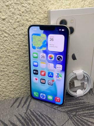 Teléfono móvil iPhone 13 Pro Max. - Pantalla de 6.7 pulgadas. - Sistema de triple cámara trasera. - Acabado en color grafito. - 256gb de memoria. - Funciona como el primer día - Batería al 83% - Muchas fundas - Se entrega con su caja y cable de carga