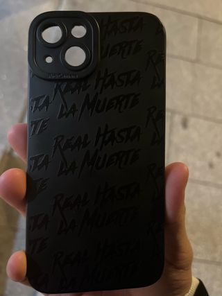 Funda para iPhone 13 con diseño Real Hasta La Muerte de Anuel AA. La funda es de color negro y tiene el texto grabado. - Diseño exclusivo. - Acabado mate.