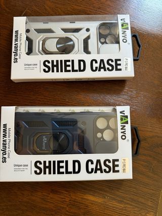 Nuevas fundas para iPhone 13 Pro Max de la marca VANYO. Son dos unidades, una plateada y otra azul oscuro. - Diseño robusto y elegante. - Anillo para soporte integrado. - Protección completa para tu teléfono.Antigolpes precio para los dos -5 euros