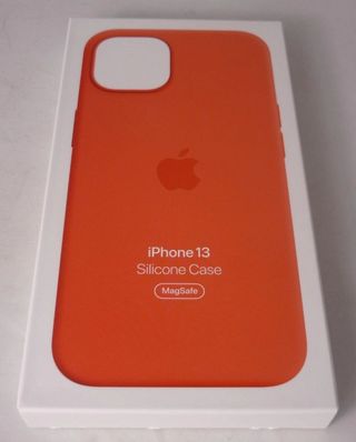 Funda original de silicona para iPhone 13. - Color naranja vibrante. - Compatible con MagSafe para una carga y accesorios sencillos. - Tacto suave y acabado mate.