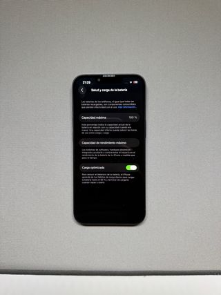 iPhone 13 Midnight almacenamiento de 128GB. Tiene poco menos de dos años de uso. siempre se ha cuidado mucho, pero ha tenido una caída CON FUNDA que aun asi, rompió el cristal trasero. Absolutamente todo funciona con normalidad y la rotura es solo de el cristal trasero. Los marcos tienen alguna marca de polvo y particulas que se han metido entre la funda y el dispositivo. (Siempre se ha llevado con funda) Camara delantera con alguna mota de polvo que puede afectar muy ligeramente a fotos a contraluz. Fotos normales no se aprecia nada.