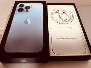 Teléfono móvil iPhone 13 Pro Max azul en buen estado, solamente tiene un problema con el conector del cargador.