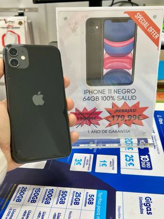 Vendo iPhone 11 64Gb Negro. Bateria al 100% de Salud. Se entrega el telefono con funda, protector de pantalla y cable de carga. DESCUENTO EXCLUSIVO VENTA ONLINE, contactar primero si venís en físico. Todos nuestros Productos cuentan con 1 año de GARANTÍA! Somos TIENDA FÍSICA, ubicados en C/ Camilo Alonso Vega 4, 39007 Santander. Hago envios a traves de wallapop! Más Productos en mi Perfil! tags(ignorar): #apple #accesorios #cargador #bateria #funda apple #carcasa apple #cargador iphone #iphone11 #iphone12 #iphone13 #iphone14 #iphone15 #macbook #cargador mac #airpods