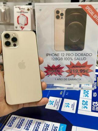 Vendo iPhone 12 Pro 128Gb Dorado Bateria al 100% de Salud. Se entrega el telefono con funda, protector de pantalla y cable de carga. DESCUENTO EXCLUSIVO VENTA ONLINE, contactar primero si venís en físico. Todos nuestros Productos cuentan con 1 año de GARANTÍA! Somos TIENDA FÍSICA, ubicados en C/ Camilo Alonso Vega 4, 39007 Santander. Hago envios a traves de wallapop! Más Productos en mi Perfil! tags(ignorar): #apple #accesorios #cargador #bateria #funda apple #carcasa apple #cargador iphone #iphone11 #iphone12 #iphone13 #iphone14 #iphone15 #macbook #cargador mac #airpods