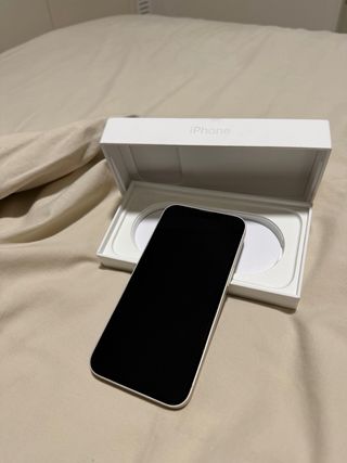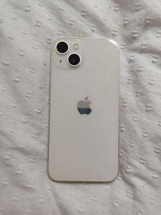 Teléfono móvil iPhone 13 en color blanco y con 128GB de almacenamiento. Perfecto estado, bateria al 89% de salud. Con su caja y factura de compra de Julio 2024.
