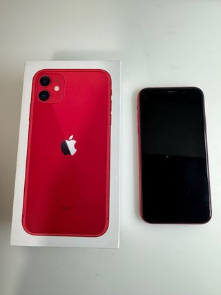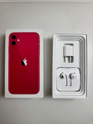 Teléfono móvil iPhone 11 en color rojo. - Pantalla de 6.1 pulgadas. - Sistema de cámara dual. - Chip A13 Bionic. - Salud batería a 70% - Con auriculares apple - Funcionamiento perfecto