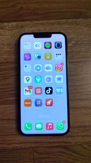 Teléfono móvil iPhone 13 en color plata. Se encuentra en buen estado. Pero le falla la camara delantera lo de mas todo bien