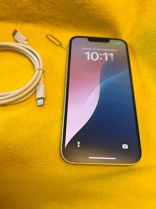 iPhone 13 Blanco en perfecto estado. - Cable de carga no original - Clip para extraer la tarjeta SIM. - Sin factura - Sin caja - Esteticamente perfecto - Salud de la bateria 77% - Sin reparaciones (todo original) - 128Gb