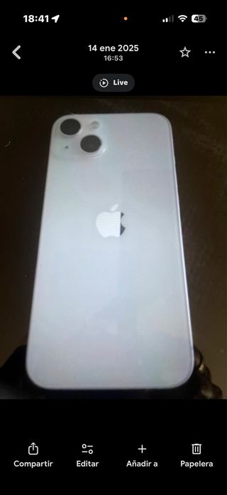 Vendo iPhone 13 de 128GB color verde en buen estado de funcionamiento. 🔋 Salud de batería: 89% (ver foto) 📱 Pantalla en buen estado, sin fallos 📸 Cámaras, Face ID, altavoces, micrófono y botones funcionando al 100% 🔓 Libre de iCloud y listo para usar ⚠️ A tener en cuenta: El cristal trasero está agrietado (ver fotos). Es solo un defecto estético, no afecta al uso diario. Con funda apenas se nota o se puede cambiar el cristal trasero. 📦 Incluye funda transparente 💬 Precio acorde al estado, escucho ofertas razonables