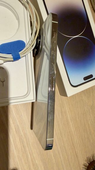 Este iPhone 14 Pro Max en color dorado de 126GB. Está en perfecto estado, sin arañazos ni marcas. Las cámaras intactas. Además, funciona perfectamente sin ningún problema. Lo vendo por cambio de iPhone y no dejarlo cogiendo polvo en la caja. Incluye el cable de carga, la horquilla y la caja. También tengo disponibles un montón de fundas que regalo con su compra. No dudes consultarme cualquier cosa, sin compromiso.