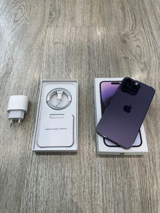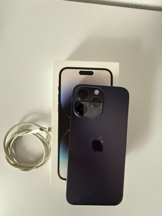 iPhone 14 Pro Max en color morado, sin golpes ni arañazos. - Pantalla de 6.7 pulgadas. - Cámara Pro de 48MP. - Chip A16 Bionic.
