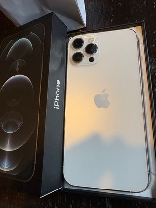 iPhone 12 Pro Max en color grafito con 128GB de almacenamiento. Excelente estado. Sin roturas, solamente algún rasguño minúsculo imperceptible en el lateral pero las pantallas y la parte posterior perfecta como se puede ver. La batería actualmente está al 74% sin problema alguno. Está en la caja original. Se facilitará también la factura. - Pantalla Super Retina XDR. - Chip A14 Bionic. - Sistema de cámaras Pro avanzado. - Cerámica Shield frontal, más resistente que cualquier vidrio de smartphone.