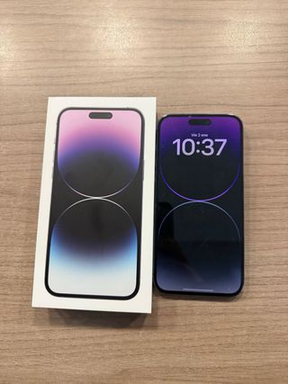 Teléfono móvil iPhone 14 Pro Max con 128GB de almacenamiento. - Color morado. - Pantalla de alta resolución. - En perfecto estado