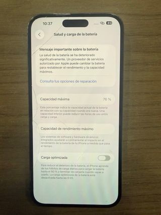 Teléfono móvil Apple iPhone 14 Pro Max con 128 GB de almacenamiento. - Capacidad máxima de batería del 88%. - Carga optimizada activada. - Tres años de garantía - Compramos tus productos como forma de pago o en efectivo