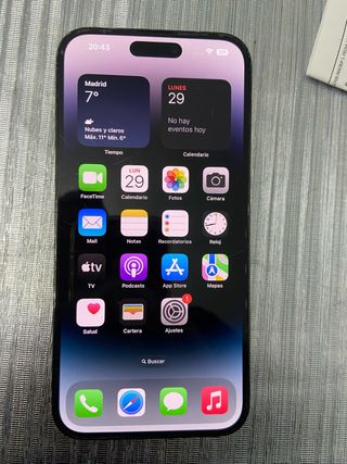 Nuevo de caja de Agosto 2025. ( 5 meses) iPhone 14 Pro Max con una gran capacidad de 256 GB de almacenamiento interno. Solo lo he usado estos 5 meses. La batería bien, no le ha dado tiempo a estropearse en tan poco tiempo.