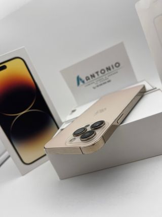 iPhone 14 Pro Max en color dorado con 256 GB de almacenamiento. Se incluye la factura de compra y seis fundas. - Capacidad de 256 GB. - Color dorado. - Incluye 6 fundas. - Incluye su caja y el cable