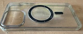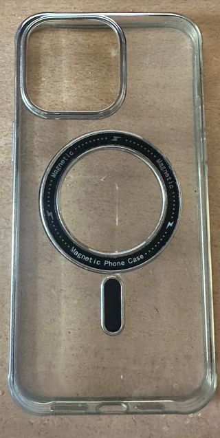 Funda protectora transparente para iPhone 14 Pro Max con anillo magnético integrado. - Diseño claro que permite ver el color original del teléfono. - Compatible con carga MagSafe y accesorios magnéticos. - Bordes reforzados para mayor protección.