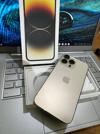 iPhone 14 Pro Max en excelente estado. - Color dorado/plateado. - Diseño elegante y moderno.