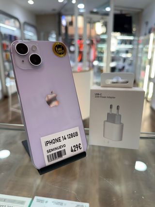iPhone 14 de 128GB en color morado, en perfecto estado. - Capacidad de 128GB. - Color morado. - Modelo iPhone 14. Garantía 1 año