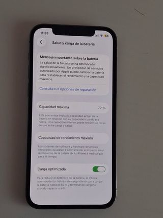 Teléfono móvil iPhone 12 Pro en color gris. -en perfecto estado , el único defecto que tiene es la bateria , q dura unas 5 horas de uso “intenso” , de ahí su precio -entrega en mano en albacete - Pantalla Super Retina XDR. - Chip A14 Bionic. - Sistema de cámaras Pro avanzado. - Parte trasera de vidrio mate texturizado y diseño de acero inoxidable.