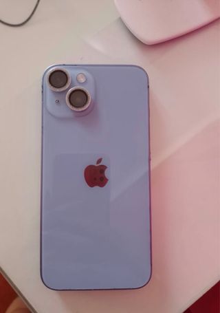 Teléfono móvil iPhone 14 Plus 256GB en color azul. En muy buen estado, muy bonito y hien cuidado, unico defecto es una pequeña raja en la camara apenas visible y no afecta para nada la calidad de las fotos Tiene protector de cristal Viene con la funda - Pantalla de 6.7 pulgadas. - Cámara dual de 12 MP. - Chip A15 Bionic. Precio no negociable