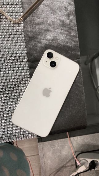 Teléfono móvil iPhone 14 en color blanco y con 128GB de almacenamiento. El teléfono es todo original va perfectamente, no es un teléfono nuevo, tiene algun arañacillo sin importancia, se puede ver en las fotos. - Pantalla de 6.1 pulgadas. - Sistema de cámara dual avanzado. - Chip A15 Bionic para un rendimiento rápido. - Estado Batería al 84%.