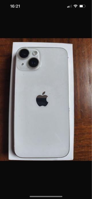 Teléfono móvil iPhone 14 con 128 GB de almacenamiento. Lo que se ve en la imagen es el protector, el telefono está perfecto - Pantalla de 6.1 pulgadas. - Cámara dual de 12 MP. - Chip A15 Bionic.