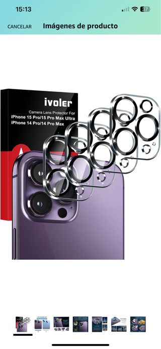 6 protectores de lente de camara iVoler para iPhone 14 Pro 6.1 pulgadas y iPhone 14 Pro Max 6.7 pulgadas. El que enseño en la foto no va incluído, es el que yo uso, las cajas están sin abrir.