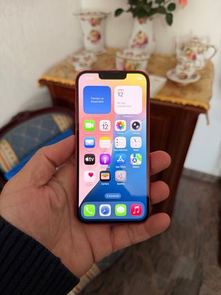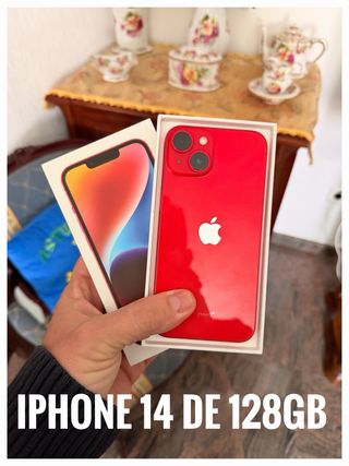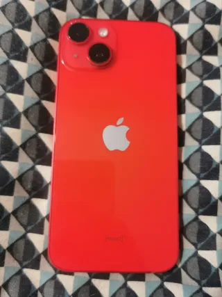 iPhone 14 en color rojo con 128GB de almacenamiento. - Capacidad de 128GB. - Batería al 86%. - Tiene una pequeña grieta en la pantalla pero por lo demás está en perfectas condiciones. - Se entrega en su caja original, con cable, 3 fundas y cristal de gel de máxima calidad puesto recientemente.
