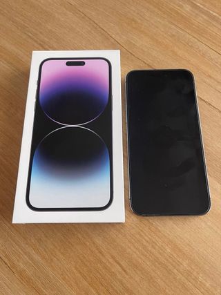 Teléfono móvil iPhone 14 Pro Max con 128GB de almacenamiento. - Diseño elegante en color morado. - Pantalla y bateria originales. - Incluye caja y cable. - Sin ningun rasguño, desde el primer dia con protector de pantalla y funda.