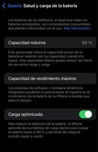 Teléfono móvil Apple en color plata. - Capacidad máxima de batería del 86%. - Carga optimizada.