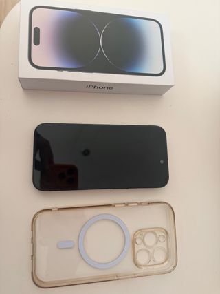 Vendo Apple iPhone 14 Pro de 256GB modelo eSIM. Atención: Este iPhone es Americano y no tiene ranura para tarjetas SIM. El pack se compone de: * iPhone 14 Pro (eSIM) * Cristal Templado * Cable de Carga Original (Nuevo) * Caja Original * Documentación * Cristal Templado extra El iPhone se encuentra en la versión de iOS 18.7.2 y la capacidad máxima de la batería es del 81%. No tiene casi ningún rasguño, siempre ha estado con funda, todas las cámaras funcionan perfectamente. Aunque sea el modelo americano, es un iPhone totalmente libre, en español y funciona con todas las redes y operadoras de España. Vendo por cambio de móvil.