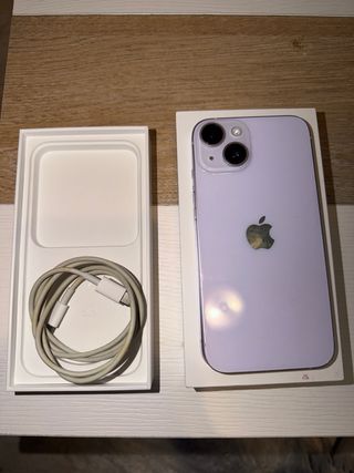 Teléfono móvil iPhone 14 en color morado y plateado. Incluye su caja original y accesorios. - iPhone 14 - Accesorios incluidos - Caja original