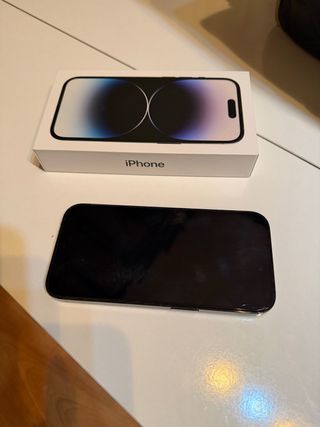 Teléfono móvil iPhone 14 Pro en color negro. 256GB El dispositivo ha tenido sustitución de batería hace aproximadamente 3 meses. La batería no es original de Apple y presenta una autonomía inferior a la esperada, por lo que no suele llegar al final del día con un uso normal y veces se apaga. Habría que echarle un ojo en un servicio técnico. 📸 Pantalla, carcasa y cámaras en perfecto estado. 📦 Incluye caja original.