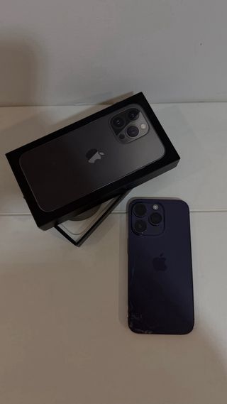 iPhone 14 Pro 128GB en venta • Parte trasera con pequeño estallado (no afecta en nada al funcionamiento). • Funciona todo perfecto: pantalla, cámaras, Face ID, batería y altavoces. • Libre de fábrica, compatible con cualquier operador. • Gran oportunidad para quien busque un iPhone de última generación a mejor precio.