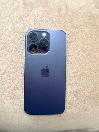Teléfono móvil iPhone 14 Pro en un llamativo color azul/morado. - Diseño elegante y moderno. - Acabado metálico premium.