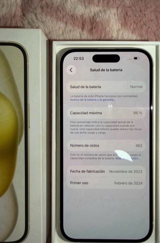 Vendo Iphone15 de 128Gb con 86% batería, móvil en perfecto estado, todas las piezas son originales, ni el más mínimo detalle, mejor ver y probar en persona. Dispone de factura de compra Acepto iphone como parte de pago a partir del iPhone14pro GENTE SERIA POR FAVOR NO NEGOCIABLE